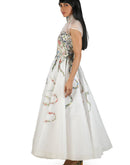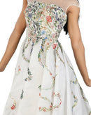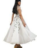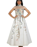 Ivory short-length collar neckline fit & flare cotton silk gown adorned with bright silk thread & zardozi embroidery.
