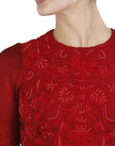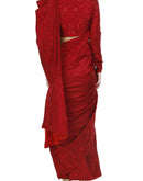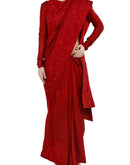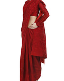 Oxblood Red Saree & blouse set delicately detailed in a tone-on-tone silk yarn, french knots & beads.