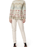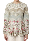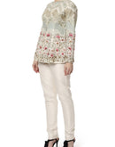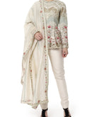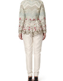Off white rib chanderi silk embroidered peplum top with pants and chanderi silk dupatta