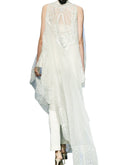 Ivory jumpsuit layered with ivory long organza embroidered kaftan.Color: IvoryFabric: OrganzaCare Instructions: Dry Clean Only.