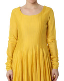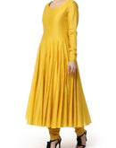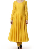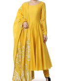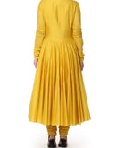 Mustard rib chanderi full sleeve anarkali with silk thread embroidered rib chanderi dupatta