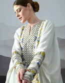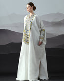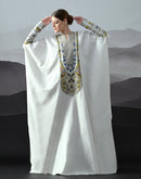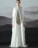 Ivory Kaftan with Hand-Embroidered Floral Work and Geometric Borders