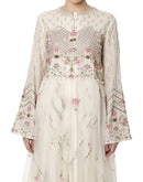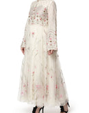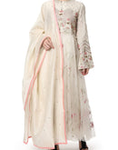 An off white floral embroidered rib chanderi silk and organza ankle length dress with chanderi silk dupatta