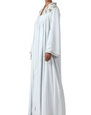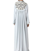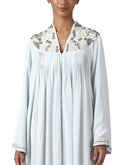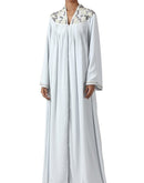Light Blue floor-length splurging neckline fit & flare cotton silk gown adorned with bright silk yarn embroidery.