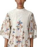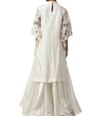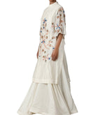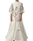 Ivory floor-length attached inner flared kaftan cotton silk with silk thread embroidery.