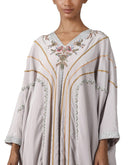 Light grey floor-length flare satin silk kaftan colorful silk yarn embroidery.Color: Light GreyFabric: Satin SilkCare Instructions: Dry Clean Only Delivery time: 3-4 weeks