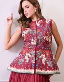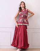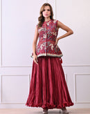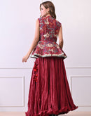 Make a statement with this exquisite maroon sleeveless peplum jacket – samantchauhan