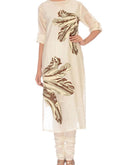Ivory calf-length straight-cut Cotton Silk Kurta with camouflage silk yarn embroidery. Color: Ivory Fabric: Cotton SilkCare Instructions: Dry Clean Only Delivery time: 3-4 weeks