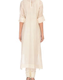 Ivory calf-length straight-cut Cotton Silk Kurta with camouflage silk yarn embroidery.