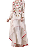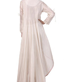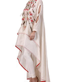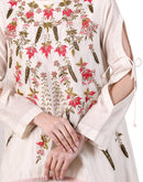 Ivory keyhole cut-out sleeves asymmetric hemline Cotton Silk Kurta, adorned with silk & zari yarn.