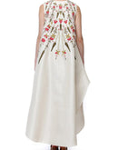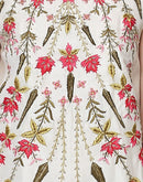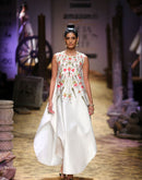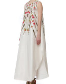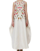 Ivory ankle-length curved hemline cotton silk dress embroidered in silk & zari yarn.