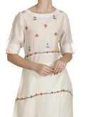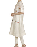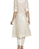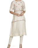 Ivory calf-length panelled Cotton Silk Kurta with embroidered floral motifs of silk yarn.