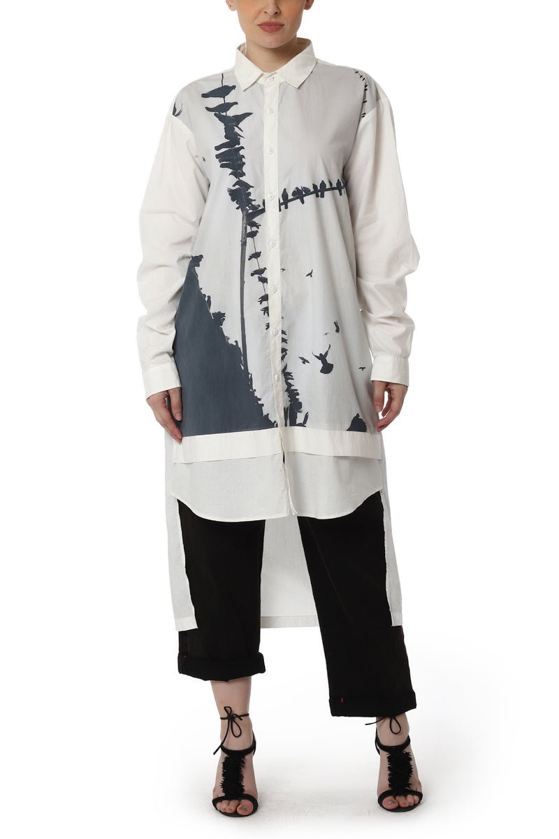 Ivory shirt dress layered with ivory chanderi front-opening jacket embroidered in silk & zari yarn.Color: IvoryFabric: ChanderiCare Instructions: Dry Clean Only.