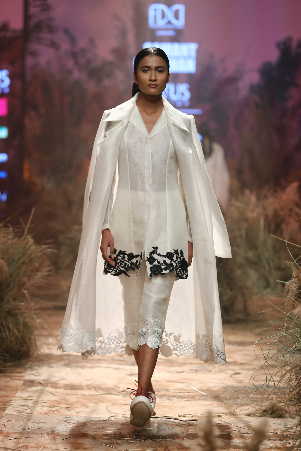 Ivory linen silk embroidered shirt, pant & long jacket.Color: IvoryFabric: Linen SilkCare Instructions: Dry Clean Only.
