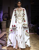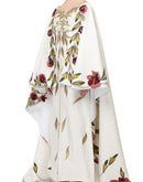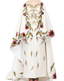Ivory cape style front-opening floor-length Cotton Silk Gown beautified in floral motifs of silk & zari yarn.