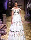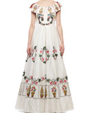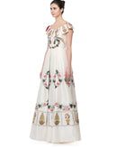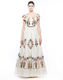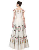 Ivory boat-neck floor-length cotton silk gown embroidery in floral motifs silk & zari yarn.