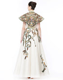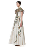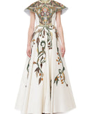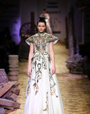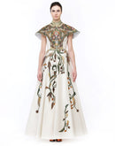 Ivory high mandarin collared front-opening fit & flare Cotton Silk Gown beautified with floral motifs of silk yarn, dabka & zari work.