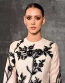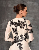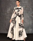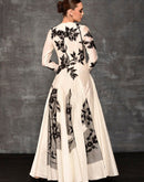 White panelled patch worked long dress.Color: WhiteFabric: MeshCare Instructions: Dry Clean Only.