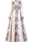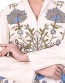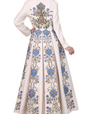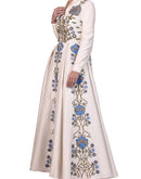 Ivory fit & flare pleated jacket style Cotton Silk jacket Gown embellished floral motifs of silk & zari yarn.