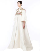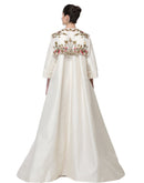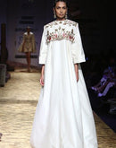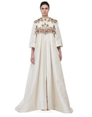 Relax Fit floor-length front-zipper opening cotton silk gown embroidered in silk yarn.