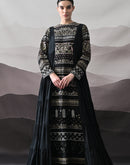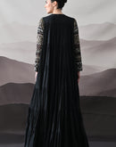 Black Artisanal Embroidered Gown with Panelled Overlay