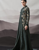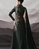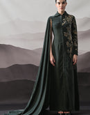 Deep Green Gown with Asymmetrical Embroidery