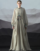 Beige Kaftan with Hand-Embroidered Motif and Soft Gathered Volume