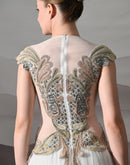 Ivory Gown with Hand-Embroidered Sculpted Bodice and Soft Pleated Gher