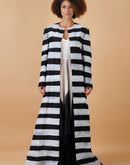 A black cotton silk floor-length jacket with block printed along with – samantchauhan