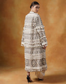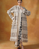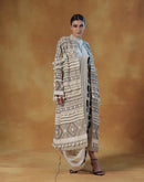 Embroidered bohemian style long jacket in linen silk, topped on an ivo – samantchauhan