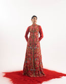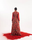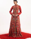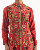 Striking one-piece ensemble: a red embroidered long jacket in luxurious cotton silk, offering a blend of sophistication and intricate detailing.
