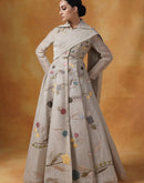 Embroidered A-line linen silk gown which has a collared neck with a pa – samantchauhan