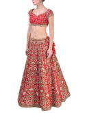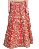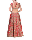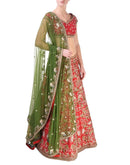 Coral Pink embroidered chanderi lehenga & blouse with green mesh embroidered dupatta.Color: Coral Pink & GreenFabric: Chanderi & MeshCare Instructions: Dry Clean Only. Delivery time: 3-4 weeks