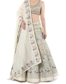 Off white rib chanderi embroidered lehenga and blouse with embroidered rib chanderi dupatta   Color: Off whiteFabric: Rib Chanderi SilkCare Instructions: Dry Clean Only Delivery time: 3-4 weeks