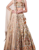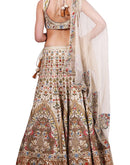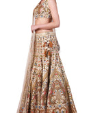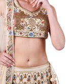 Beige Cotton Silk Lehenga & blouse set adorned with lustrous silk yarn & zari work paired with a matching net dupatta highlighted by silk & zari embroidery.