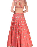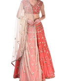 Coral embroidered chanderi lehenga & blouse with ivory mesh embroidered dupatta.Color: CoralFabric: Chanderi & MeshCare Instructions: Dry Clean Only.