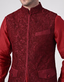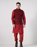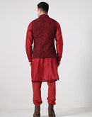elegant maroon kurta set paired with a textured nehru jacket