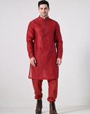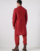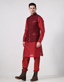 Step up your festive style with this elegant maroon kurta set, paired with a textured Nehru jacket. Crafted for comfort and sophistication, it's a perfect choice for weddings, celebrations, and cultural events.