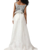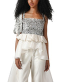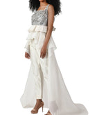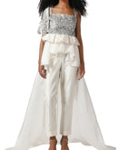 Ivory trail top squire neckline fit & trail organza silk top with cotton silk pant, bright zardozi embroidery.