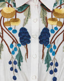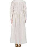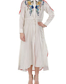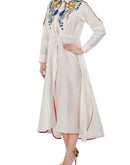 Ivory string tie-up calf-length shirt style Cotton Silk Dress embroidered floral motifs of silk & zari yarn.