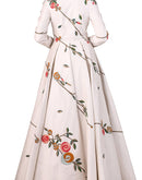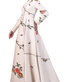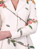 Ivory collared front-opening jacket style Cotton Silk Gown highlighted floral motifs of silk & zari yarn.