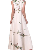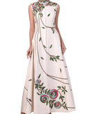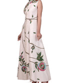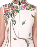Ivory high mandarin collared front-opening Cotton Silk Dress beautified with floral motifs of silk yarn, dabka & zari work.