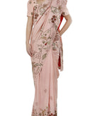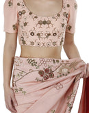 Powder Pink Cotton Silk Saree & blouse set embroidered hexagonal & floral motifs of silk & zari yarn.