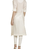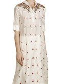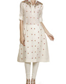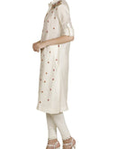 Ivory mandarin-collared front placket straight Cotton Silk Kurta detailed in floral motifs of silk yarn embroidery.