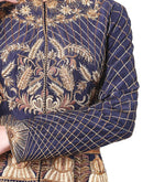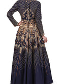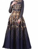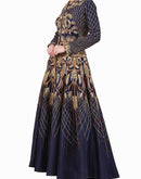 Navy front-opening fit & flare cotton silk gown embroidered in zari yarn.