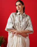 IVORY cotton silk Kaftan dress front open floor-length that is embroidered around the neck and has in sleeves Fabric: cotton & cotton silk Embroidery details: silk thread & zardozi work ...