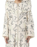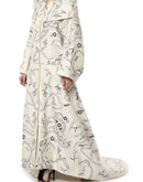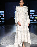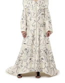 Black silk thread asymmetrical embroidery trail gown with wide sleeves Color: Off white Fabric: Cotton silk Care Instructions: Dry Clean Only.