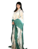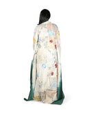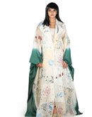 Ivory with green Ombre, floor-length cotton-silk kaftan with open front that is given an array of eye hooks is beautifully embroidered in silk yarns and zardozi The neckline showcases big...