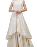 Featuring an ivory tone-on-tone embroidered high-low kurta with a long cotton inner slip dress.Color: IvoryFabric: Cotton SilkCare Instructions: Dry Clean Only.