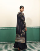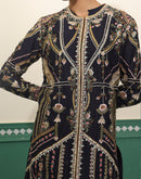 Jacket style kurta with cotton inner dress, embroidered on both front and back Fabric: Chanderi silk & Cotton Embroidery details: Silk thread & Zardozi embroidery  Set of: 2 Colour: Navy...